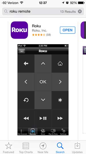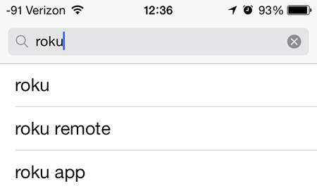 步骤 4:在屏幕顶部的搜索字段中输入“roku”,然后选择“Roku Remote”搜索结果。