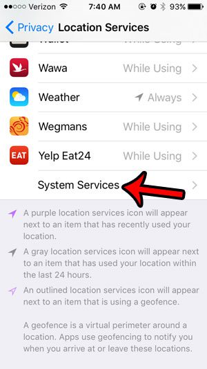 第 4 步:向下滚动并选择系统服务菜单底部的选项。