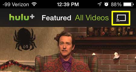 在使用 iPhone 5 在 Chromecast 上观看 Hulu 之前,您需要做的第一件事是确保您拥有最新版本的 Hulu 应用程序。您可以阅读本文,了解如何更新 iPhone 5 上的应用程序。您还需要连接到与 Chromecast 相同的无线网络。然后,只要您拥有有效的 Hulu Plus 订阅并已在 Hulu Plus iPhone 应用程序上登录您的帐户,您就可以按照以下步骤开始在电视上观看。
