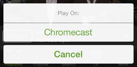 第 2 步:触摸屏幕右上角的 Chromecast 图标。请注意,如果您没有看到该图标,则表明您的 iPhone 和 Chromecast 不在同一无线网络上,或者 Chromecast 可能未打开。