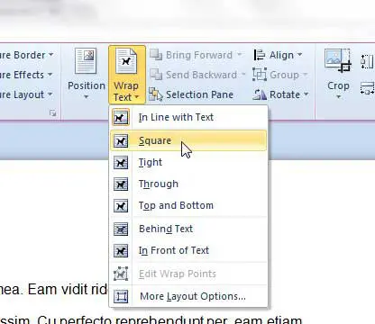 我的首选方法是“方形”选项,但如果将鼠标悬停在某个选项上,您可以在文档中看到换行文本外观的预览。