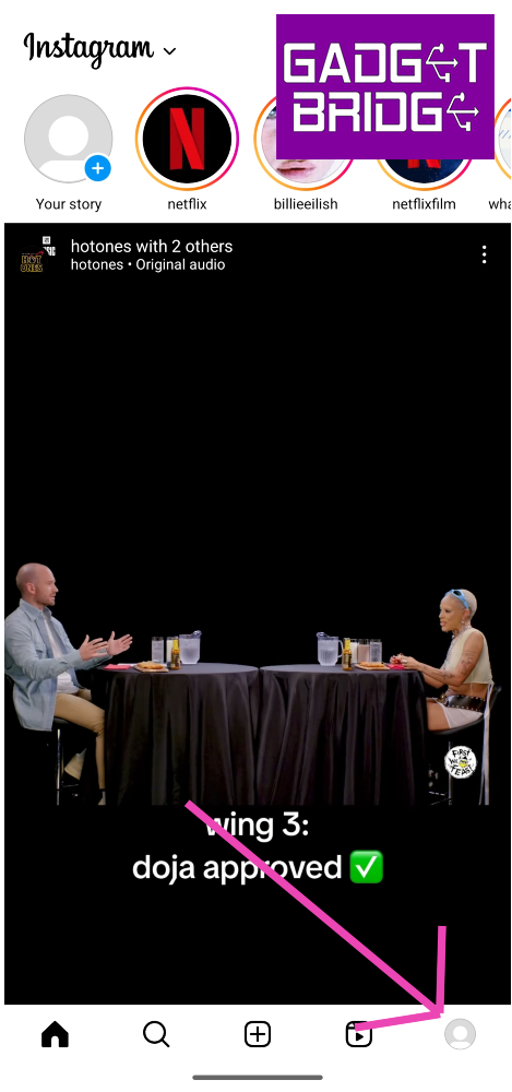 步骤一:启动 Instagram 应用程序并点击您的个人资料图片在屏幕的右下角。
