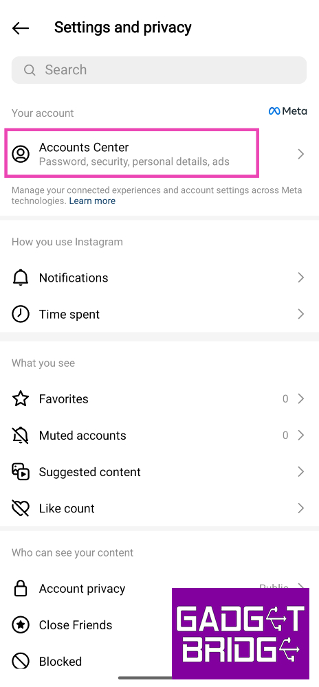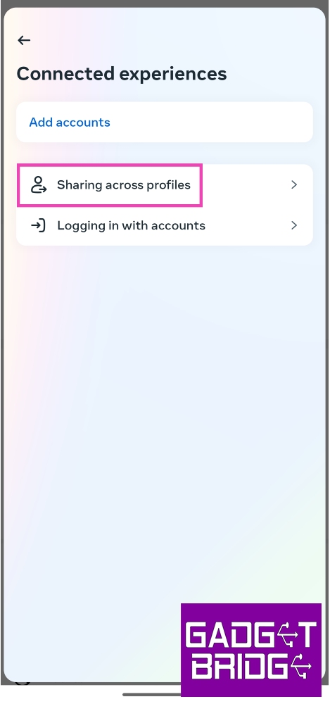 在 Instagram 应用程序上,转到个人资料>菜单>设置和隐私>帐户中心>帐户并使用正确的凭据添加您的 Facebook 帐户。