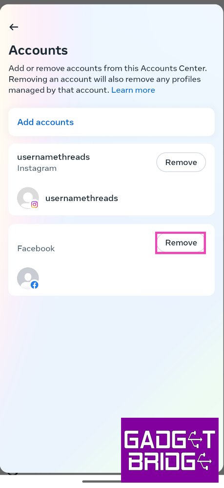 第7步:最后,选择添加账户和重新添加您的 Facebook 帐户。