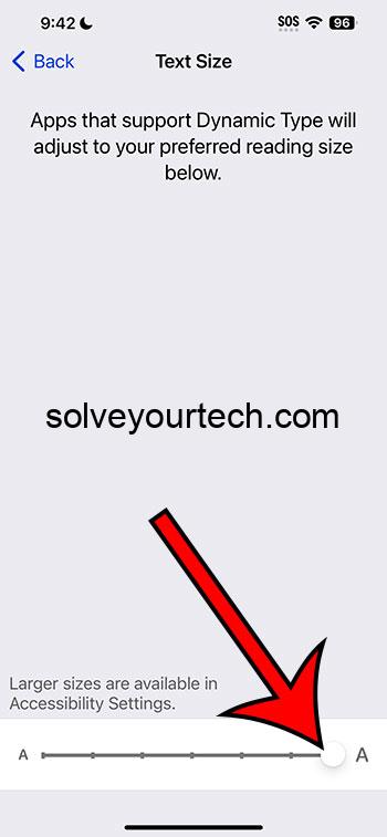 拖动滑块时,您将预览文本大小,以便您可以根据自己的感觉进行调整。