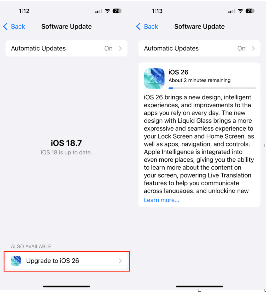 一旦您的 Wi-Fi 稳定并且您释放了 iPhone 上的空间,请按照以下说明将您的设备更新到 iOS 26。