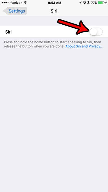 第三步:勾选右侧的按钮西里,位于屏幕的最顶部。在下图中,Siri 被禁用。如果按钮周围有绿色阴影,并且屏幕上有一些其他选项,则表示 Siri 已启用。