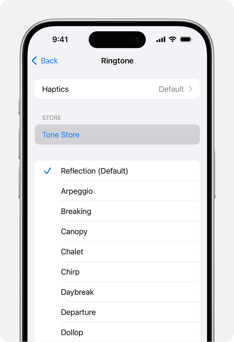 - 您可以从 Tone Store 购买新铃声或使用 iPhone 附带的铃声