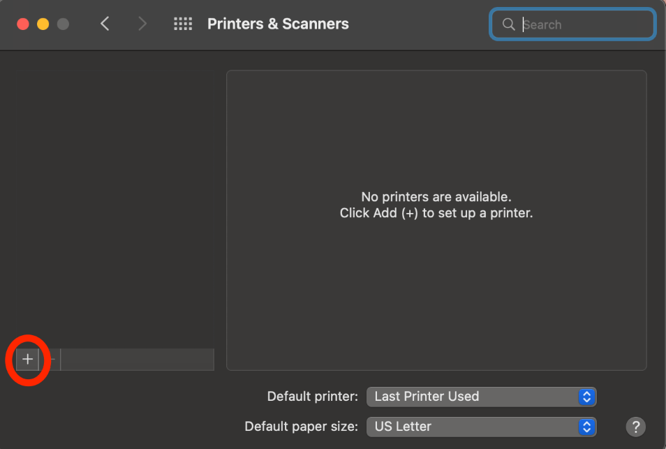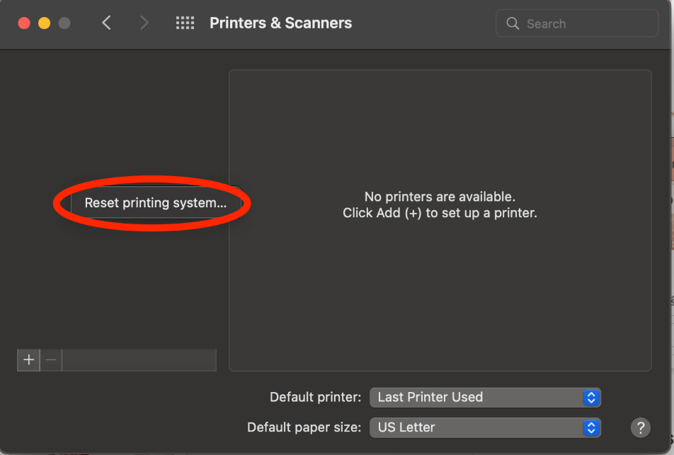 重置完成后,您需要重新安装您的打印机由选择加号按钮和单击您的打印机名称。按照任何提示完成安装。