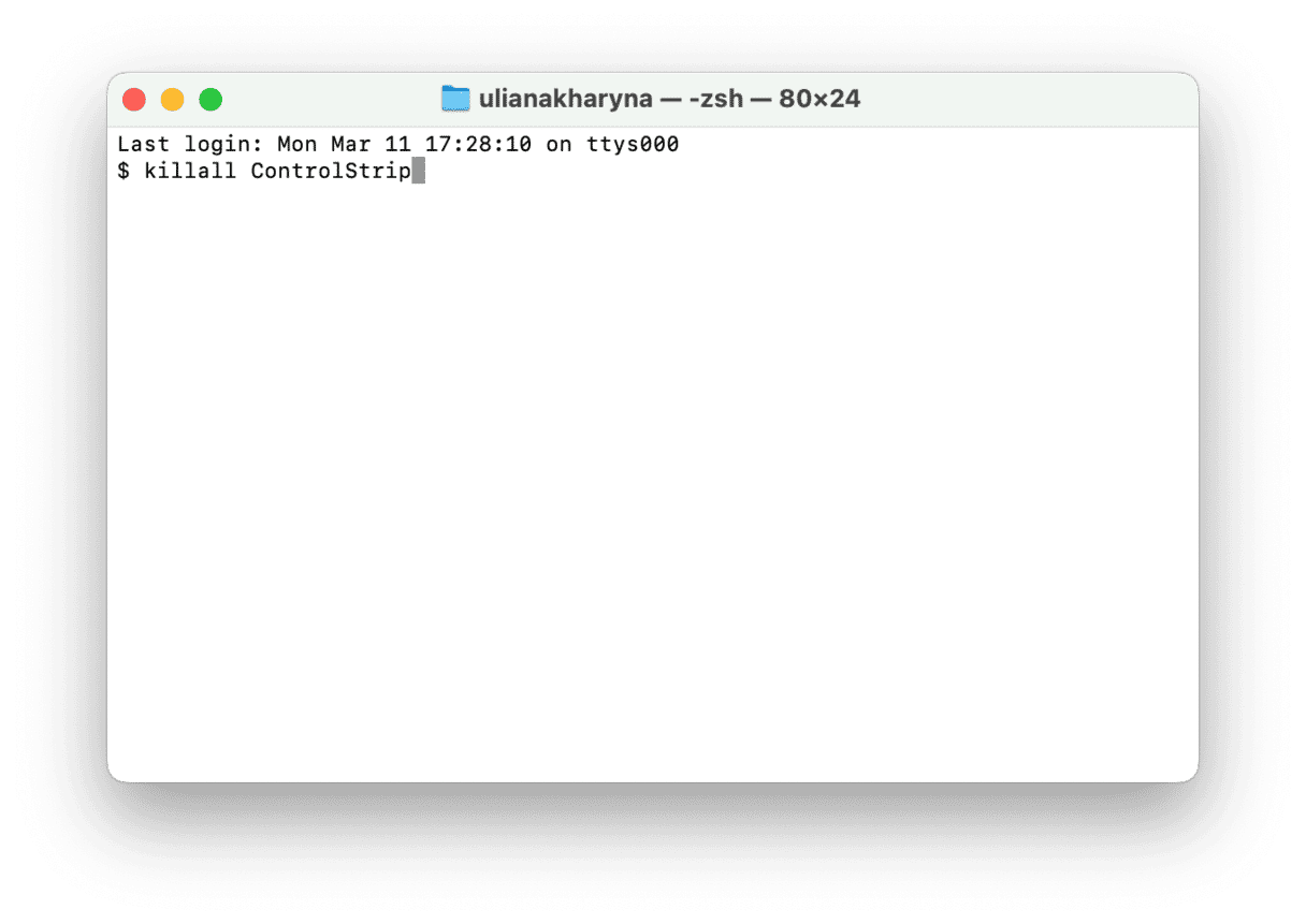 当终端打开时,尝试刷新控制条并查看它是否有助于解决您的问题。请注意,它可能会解决 Touch Bar 右侧的问题,因为 Control Strip 可以让您调整亮度和音量并询问 Siri。