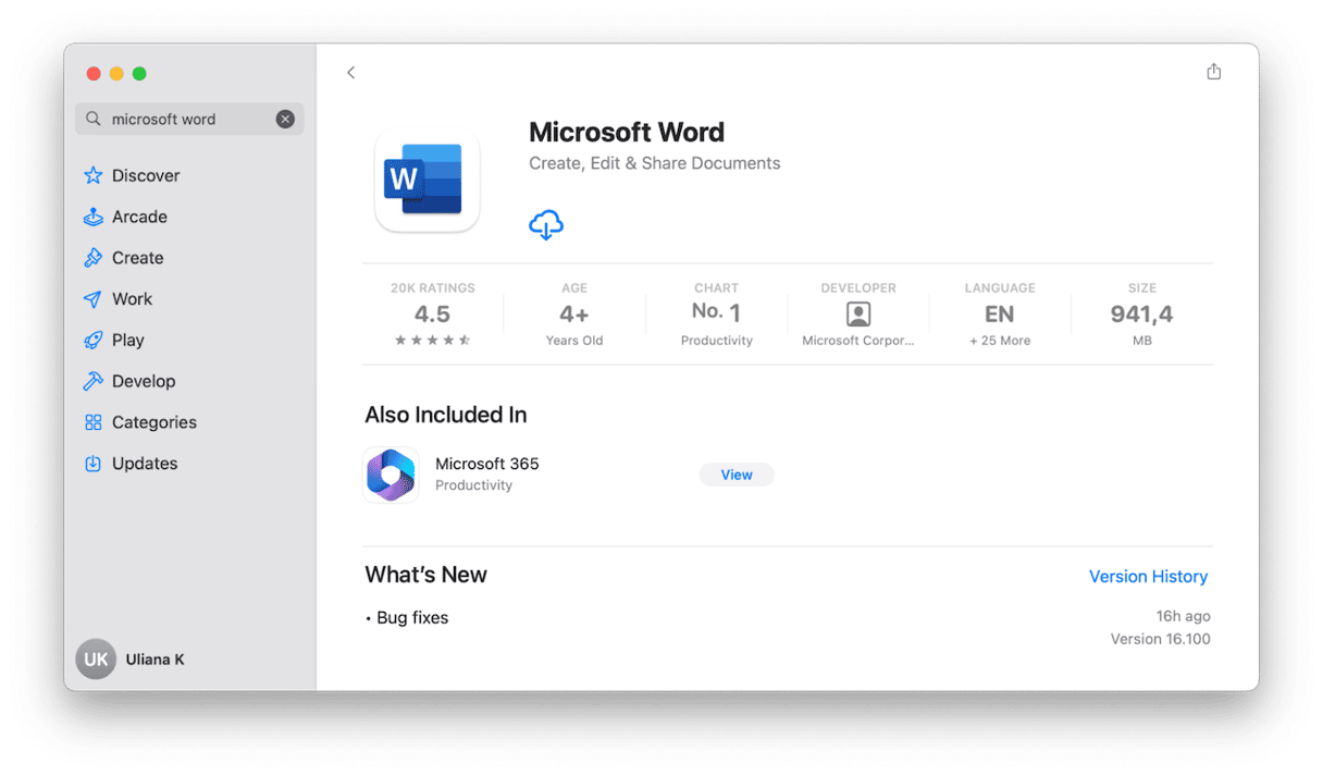 如果其他方法均不起作用,最后一步是卸载并重新安装 Word。但请确保完全卸载它。仅将应用程序二进制文件拖到垃圾箱是不行的。完全卸载 Word 或任何其他应用程序的最简单方法是使用 CleanMyMac 的应用程序功能中的卸载程序。只需选择 Microsoft Word 并单击卸载即可。现在,前往App Store或官方网站重新下载。