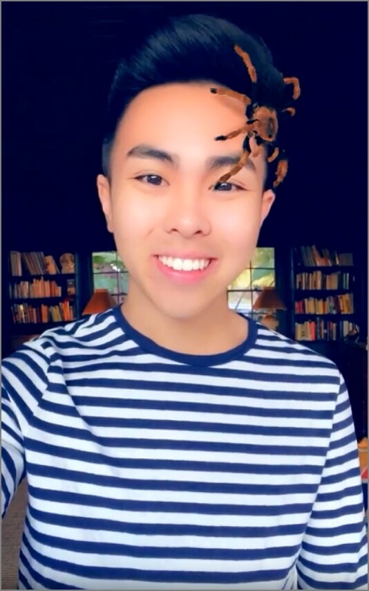 10.脸上有蜘蛛– 小心!这个逼真的滤镜会在你的脸上添加一只爬行的蜘蛛,产生一种令人惊吓的效果,让每个人都回味无穷。