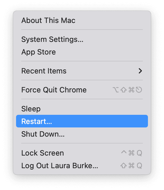 是的,书中最古老的技巧仍然有效。每当千兆字节重要时,就没有理由不进行快速重启。前往 Apple 主菜单并点击“重新启动”。