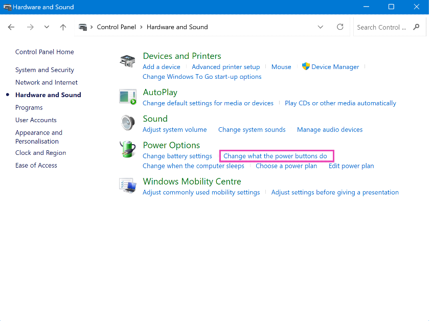 步骤3:选择选择电源按钮的功能从侧面菜单。