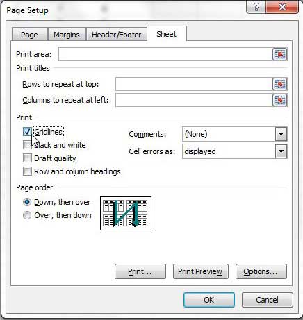通过在“页面设置”菜单上启用此设置,您将打印一系列水平和垂直线,帮助读者跟踪他们正在查看的数据单元格。