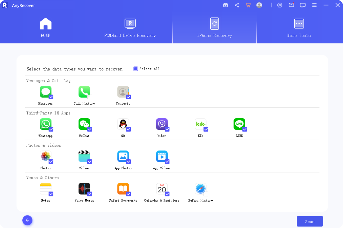 通过将 iPhone 连接到计算机并使用该软件,您还可以选择将已删除的消息和其他数据检索到任何设备。