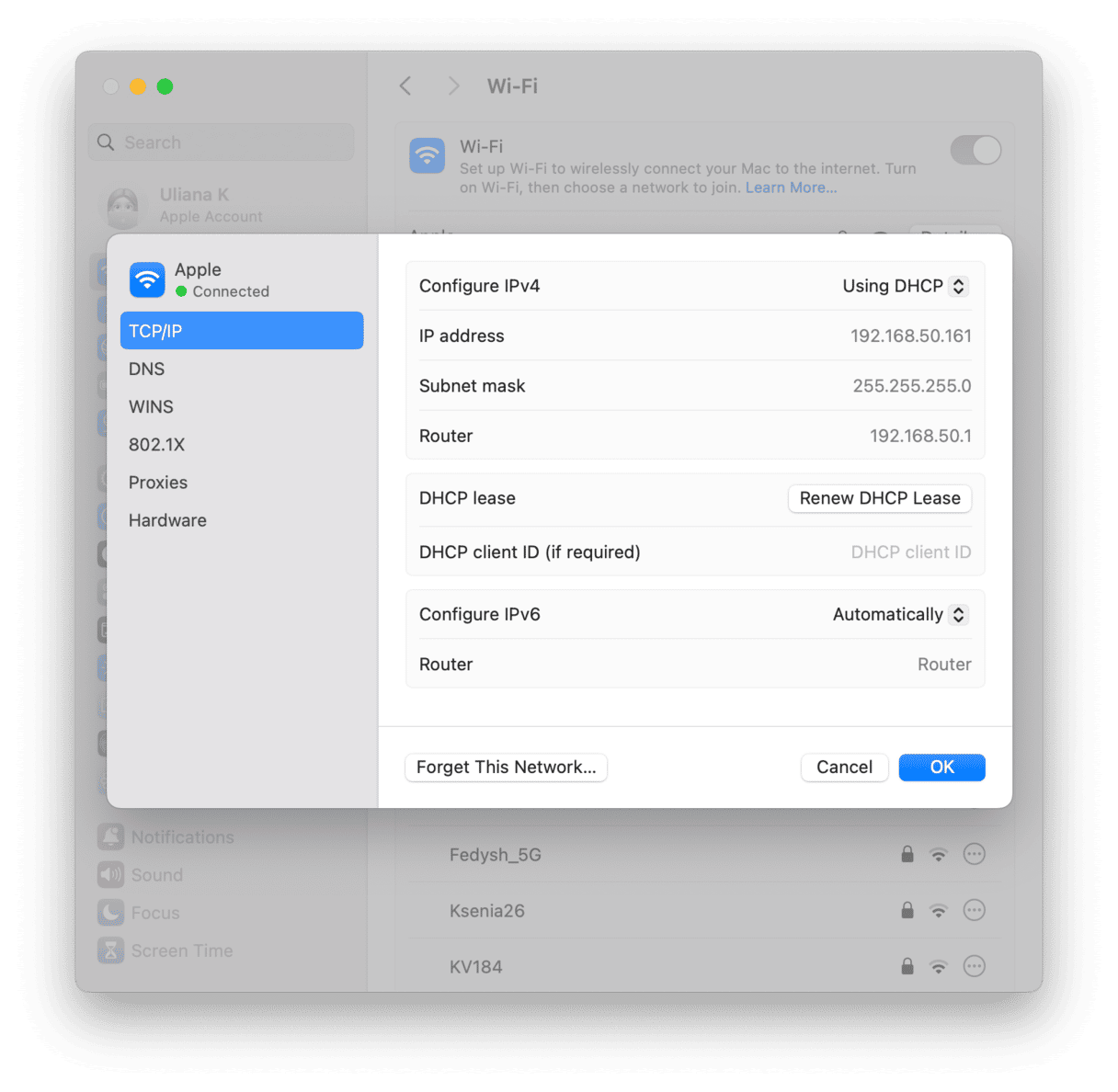 如果问题影响 Mac 上的其他应用,但网络上的其他设备正常,请尝试续订 DCHP 租约。