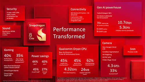 这款最新芯片组不仅将提高标准运行速度,还将促进人工智能性能的重大突破。高通声称 Snapdragon 8 Elite 中的 Hexagon NPU 可以提供卓越的性能提高 45%人工智能功能,同时以相同的幅度优化功耗。这些增强意味着 Galaxy S25 系列将比其使用 Snapdragon 8 Gen 3 的前身 Galaxy S24 Ultra 更加高效。