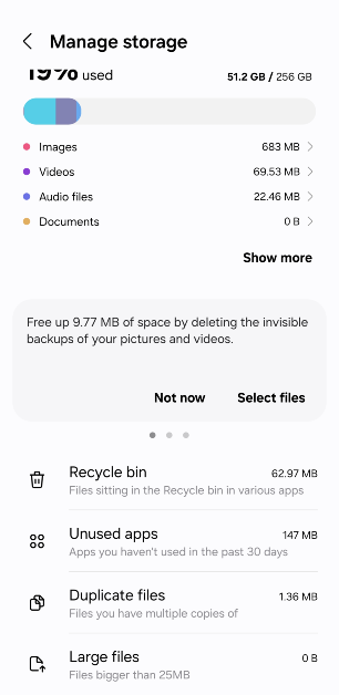 如果手机的内部存储空间已满,屏幕键盘可能无法正常工作。以下是管理存储的方法。