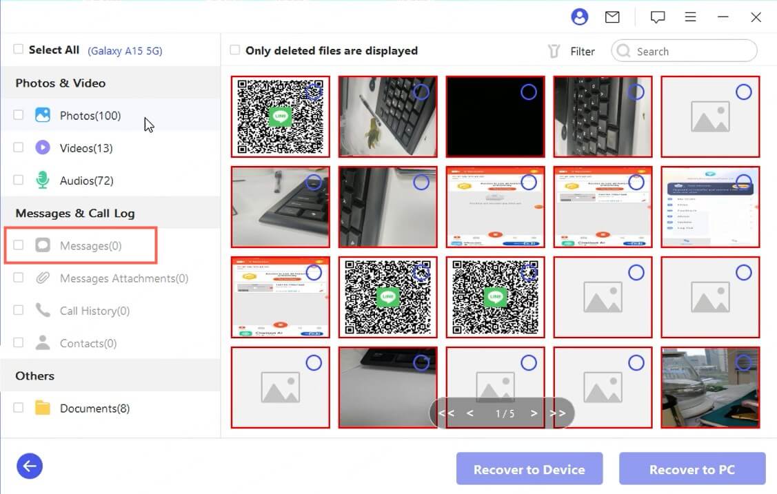第 5 步 - 恢复并保存您的数据:单击“恢复到设备“ 或者 ”恢复到电脑”按钮根据您的需要保存选定的文件。