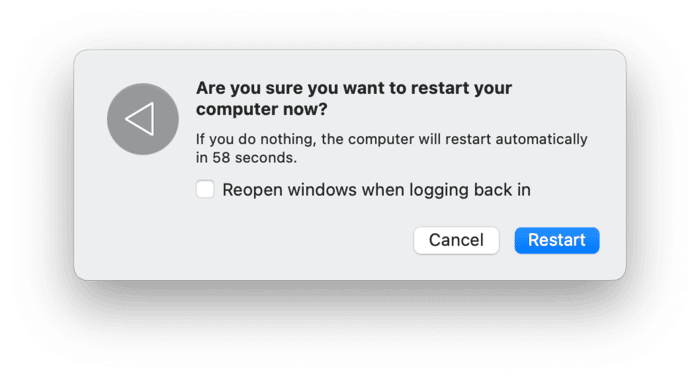 每当您在 Mac 上遇到问题时,这是第一步。它会清除临时文件,并在采用 Apple 芯片的 Mac 上对启动磁盘进行检查。 Mac 重新启动后,请再次尝试使用 Time Machine。