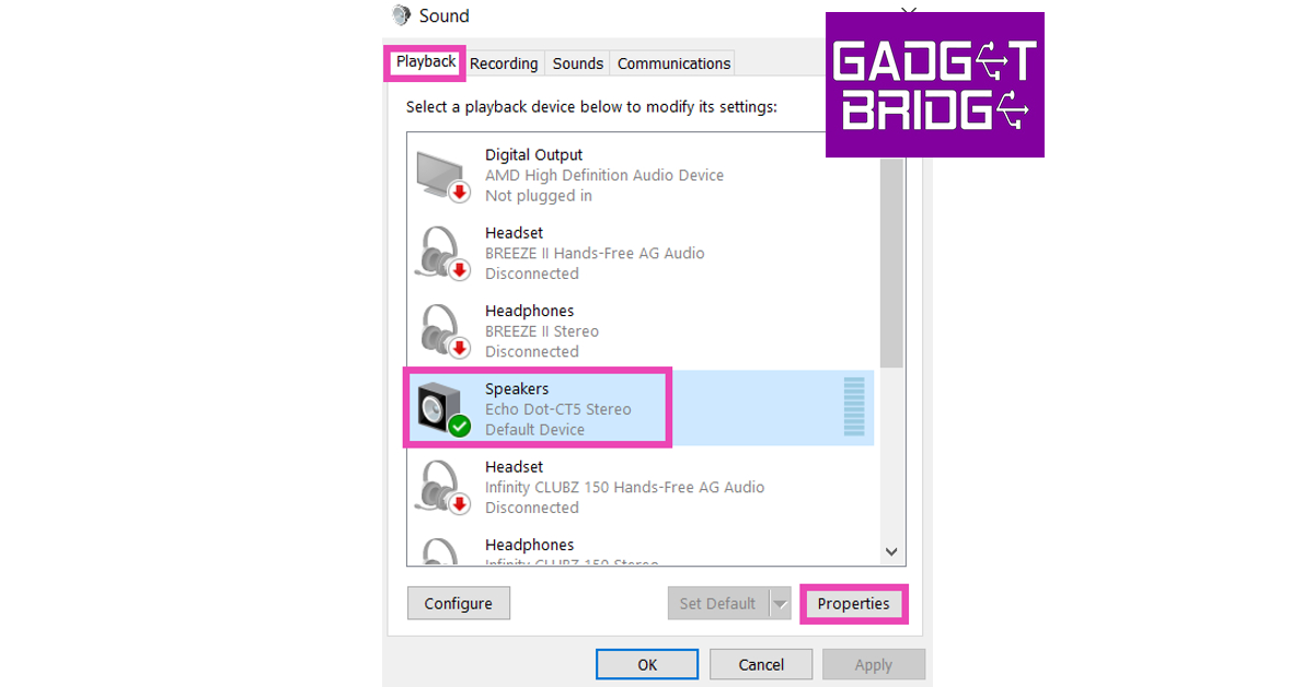 步骤3:单击您的音频输出设备并选择特性。