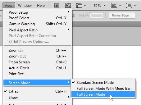 幸运的是,你可以在 Photoshop CS5 中切换到全屏模式增加画布的大小,这将使其占据更多的屏幕并减少您需要执行的滚动量。