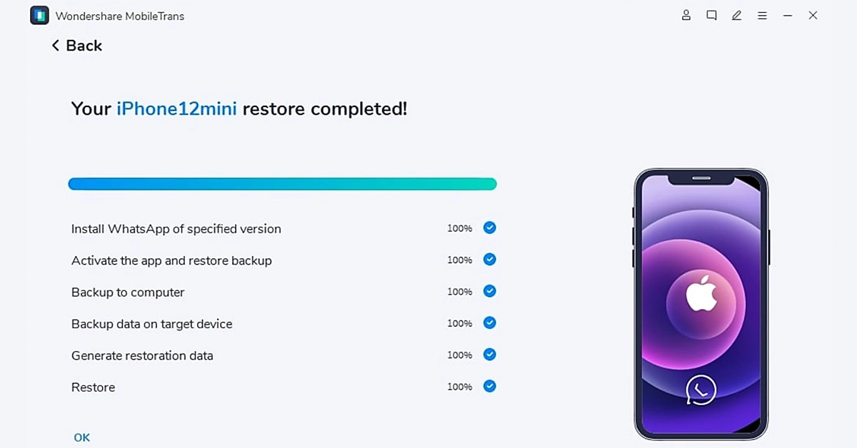 第 2 部分:Wondershare MobileTrans – 2024 年创新且快速的 WhatsApp 传输工具