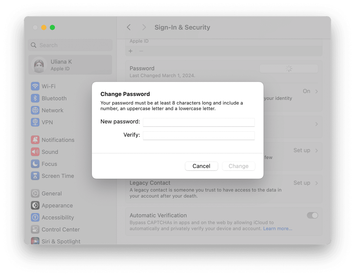 - 打开“系统设置”,单击您的 Apple ID,然后选择“登录和安全”。