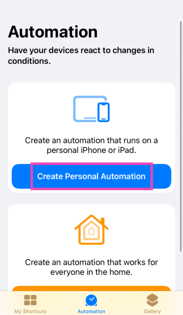 步骤一:启动快捷方式应用程序在您的 iPhone 上并切换到自动化选项卡。