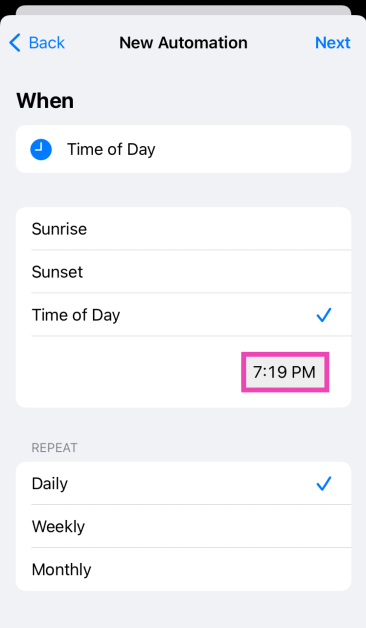 第5步:点击每月并选择日期您希望在其上发送消息。您应该知道“快捷方式”应用程序会每月自动执行此操作,因此请记住删除一旦其目的实现,这种自动化就会实现。