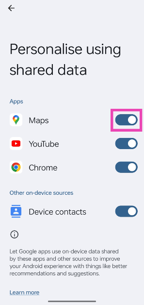 要关闭 Google 地图中的商户广告,请转至设置 > Google > Google 帐户 > 个性化使用共享数据并关闭地图的切换开关。