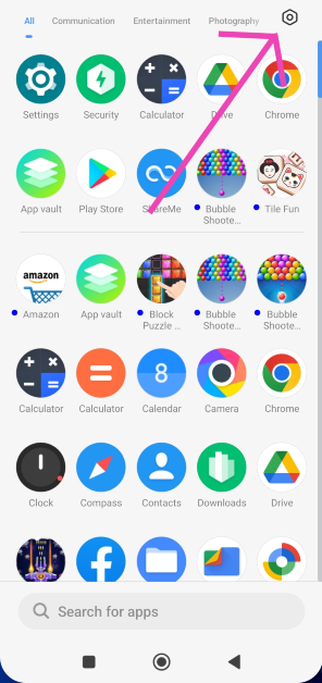 步骤一:转到应用程序抽屉并点击设置图标在屏幕的右上角。
