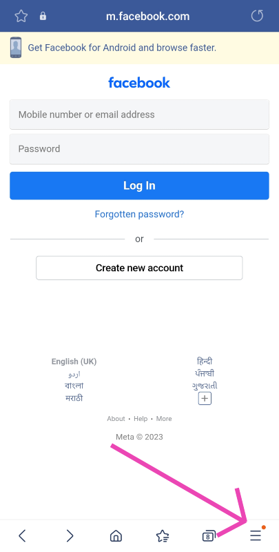 以下是在任何手机上打开 Facebook 桌面网站的 3 种常用方法。如果您在点击移动版 Facebook 上的某些图标或选项卡时遇到问题,切换到桌面版网站将会有所帮助。在本机浏览器应用程序上请求桌面网站的过程可能因不同的智能手机制造商而异,但该功能通常可以在浏览器选项中找到。