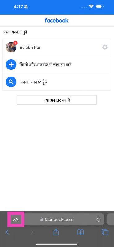 转到 iPhone 上的 Safari 网络浏览器,导航到 Facebook,点击屏幕底部的 aA 图标,然后选择“请求桌面网站”。您可以对任何网站使用此选项。