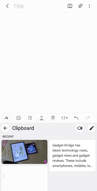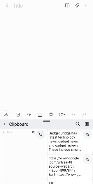 手机剪贴板中的最新条目将粘贴到笔记上。