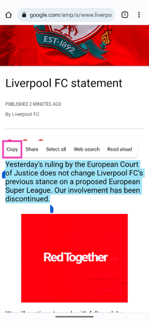 步骤3:长按任意文字并选择复制。