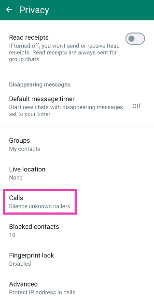 虽然您无法在 WhatsApp 上阻止来自未知号码的来电,但该平台为您提供了将其静音的选项。前往设置>隐私>通话然后打开“让未知来电者静音”旁边的切换开关。