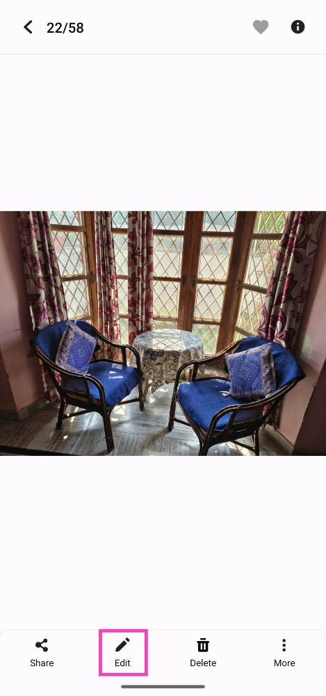 步骤一:在本机三星图库应用程序中打开您想要模糊的图片,然后点击编辑屏幕底部的选项。