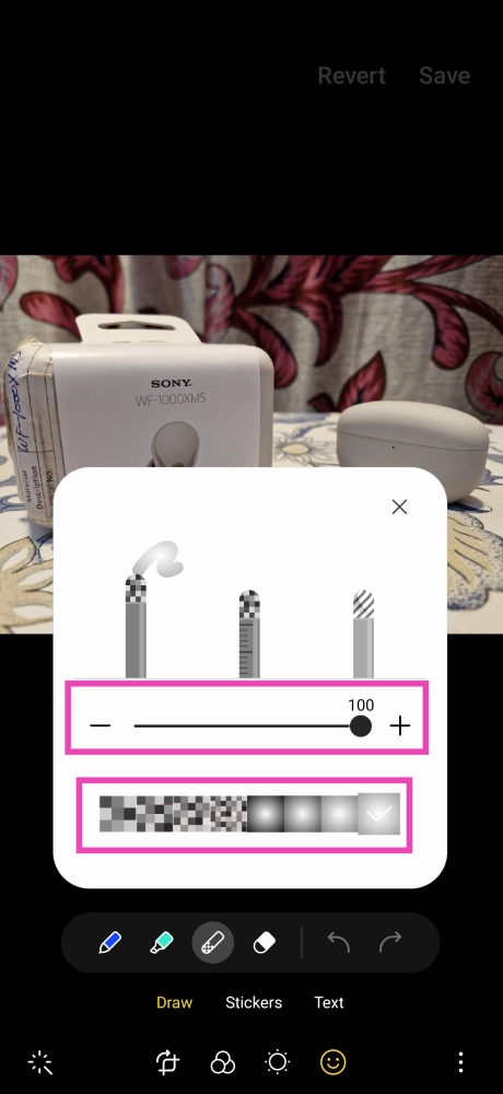 第5步:选择模糊程度和画笔尺寸从底部工具栏。