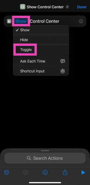 首先,使用 iPhone 上的快捷方式应用程序为控制中心创建主屏幕快捷方式。然后,前往设置>操作按钮并滑动面板,直到到达该快捷方式。