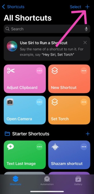 步骤一: 发射这快捷方式应用程序并点击加号图标在屏幕的右上角。
