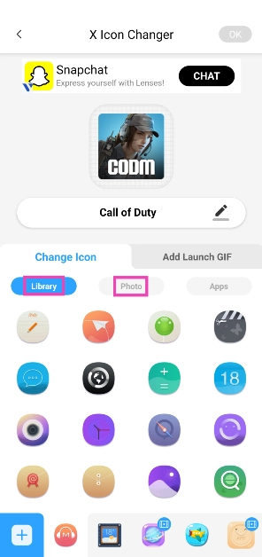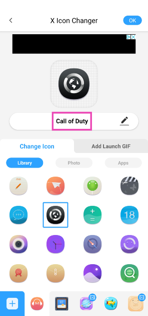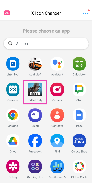 下载 X Icon Changer 应用程序并从列表中选择您要自定义的应用程序。您可以从手机图库中选择图片作为应用程序图标,或从 X 图标更换器的库中选择。点击应用程序的名称进行更改。