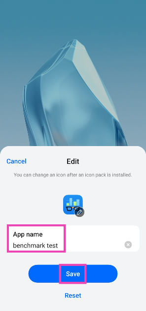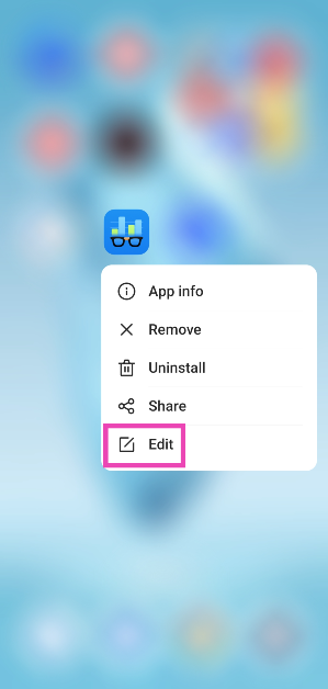 长按应用程序图标并点击“编辑”。点击应用程序图标进行编辑。点击更改的名称并输入一个新名称。点击“保存”。