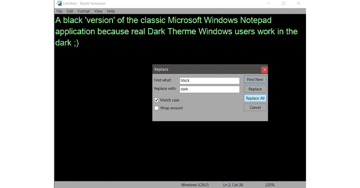 Windows 10 中的高对比度工具在整个系统中应用了深色主题。如果您特别希望在记事本应用程序中使用深色模式,则需要使用文本编辑器的第三方替代方案。这黑色记事本应用程序Microsoft Store 中提供的产品可以很好地完成这项工作。它复制了常规记事本应用程序的感觉,但添加了黑暗主题。