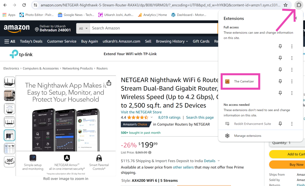 使用 CamelCamelCamel 浏览器扩展