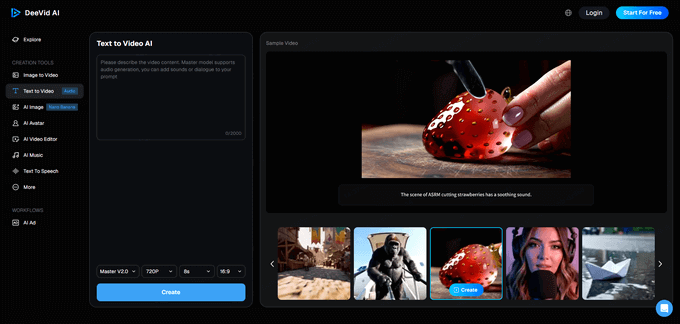 DeeVid AI 旨在创建逼真的 AI 视频,包括接吻场景。其直观的编辑器使用户无需高级编辑技能即可快速生成视频。