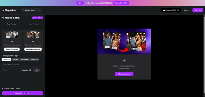 MagicShot AI 专为制作浪漫有趣的 AI 视频而设计。它支持人工智能生成具有逼真面部表情的接吻场景。