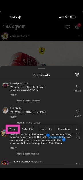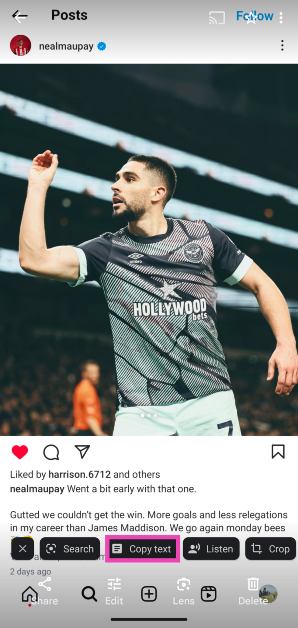 奇怪的是,这种方法只适用于 Instagram 的标题。如果您想复制评论,请按照以下方法操作。