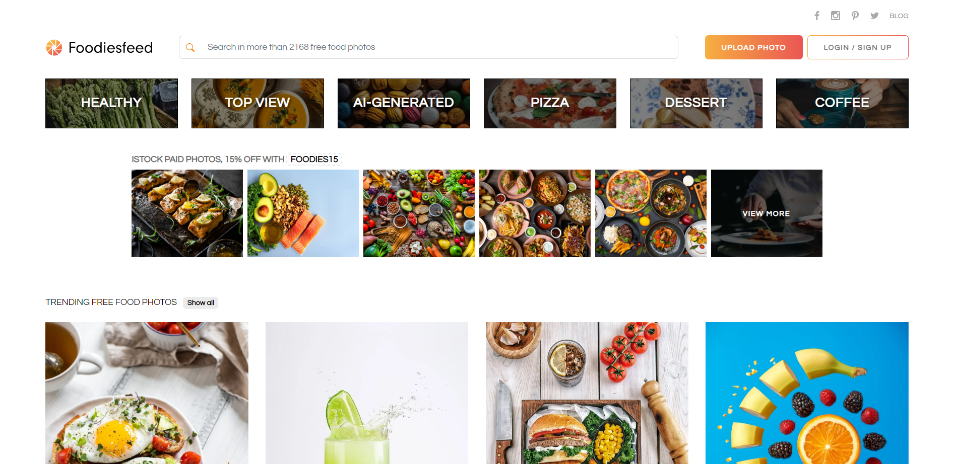 Foodiesfeed 是美食博主的绝佳 Unsplash 替代品,您可以在其中找到甜点、饮料、零食等的高质量免费食品图片。这些图像可以免费使用,无需专门获得许可证。在Foodiesfeed中,您可以使用其图片搜索功能和导航栏来快速定位并找到您需要的食物图片。因此,Foodiesfeed 是增强食品相关内容的理想 Unsplash 替代品。